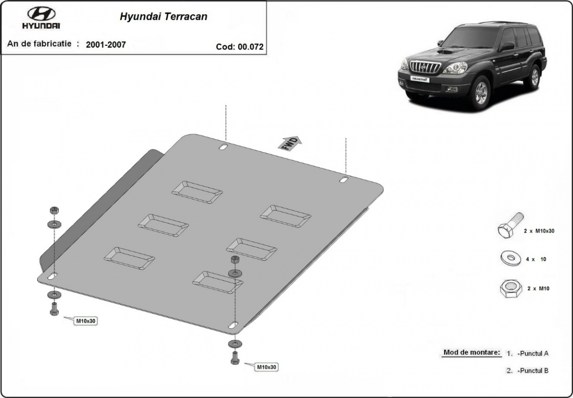 Voor de bescherming van: versnellingsbak De motor beschermplaat is nieuw en past perfect bij alle versies van Hyundai Terracan geproduceerd tussen 2001 en 2007. Gemaakt van 2.5 mm dikke Staalplaat. Schroeven, moeren, alle bevestigingsaccessoires zijn inbegrepen. Alle carterbeschermplaten zijn poedergecoat, om corrosie te vermijden. De buitenkant van de carterbeschermplaten heeft staalversterkingen, waardoor de weerstand tegen impact wordt verhoogd. |