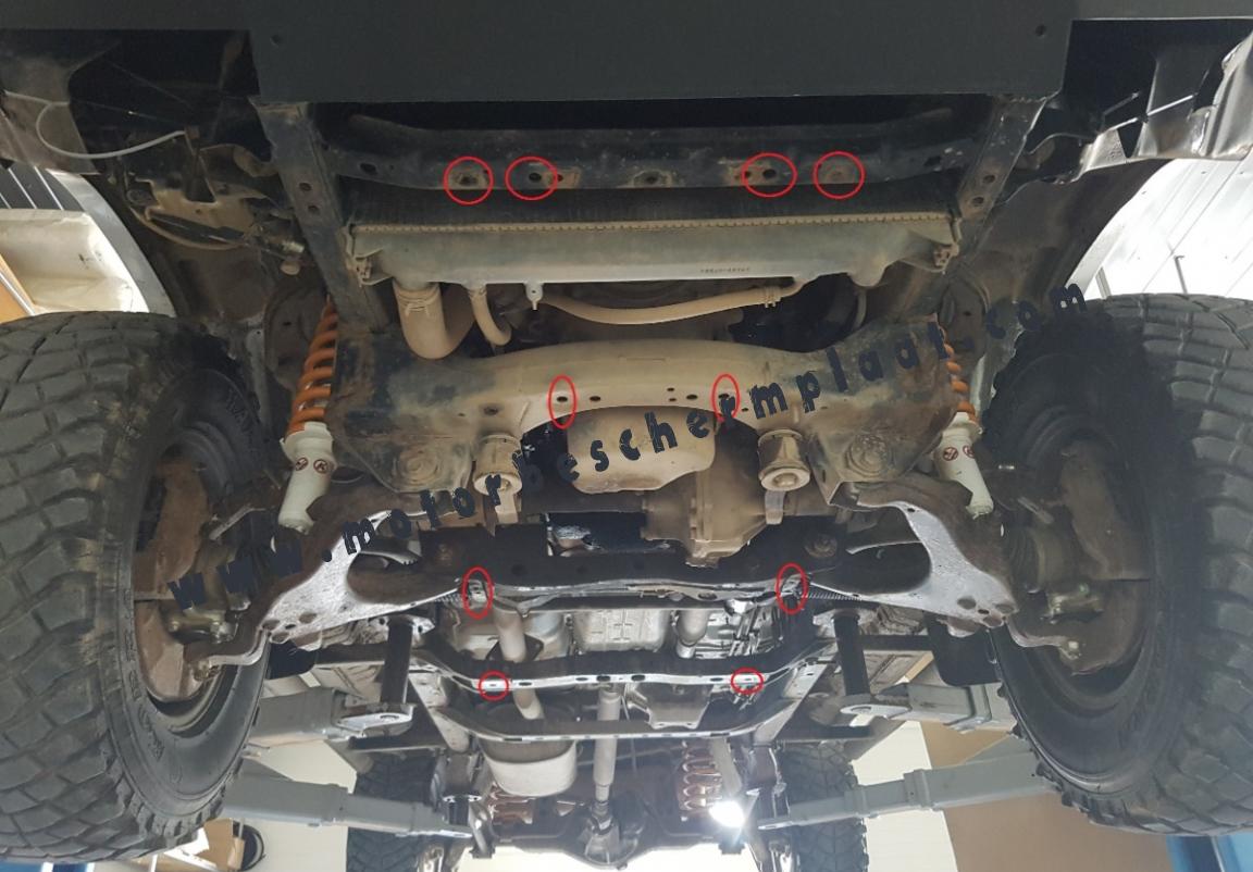 | Ieder voertuig heeft fabrieksgemaakte schroefgaten voor de carterbeschermplaat, voor een gemakkelijke montage. |