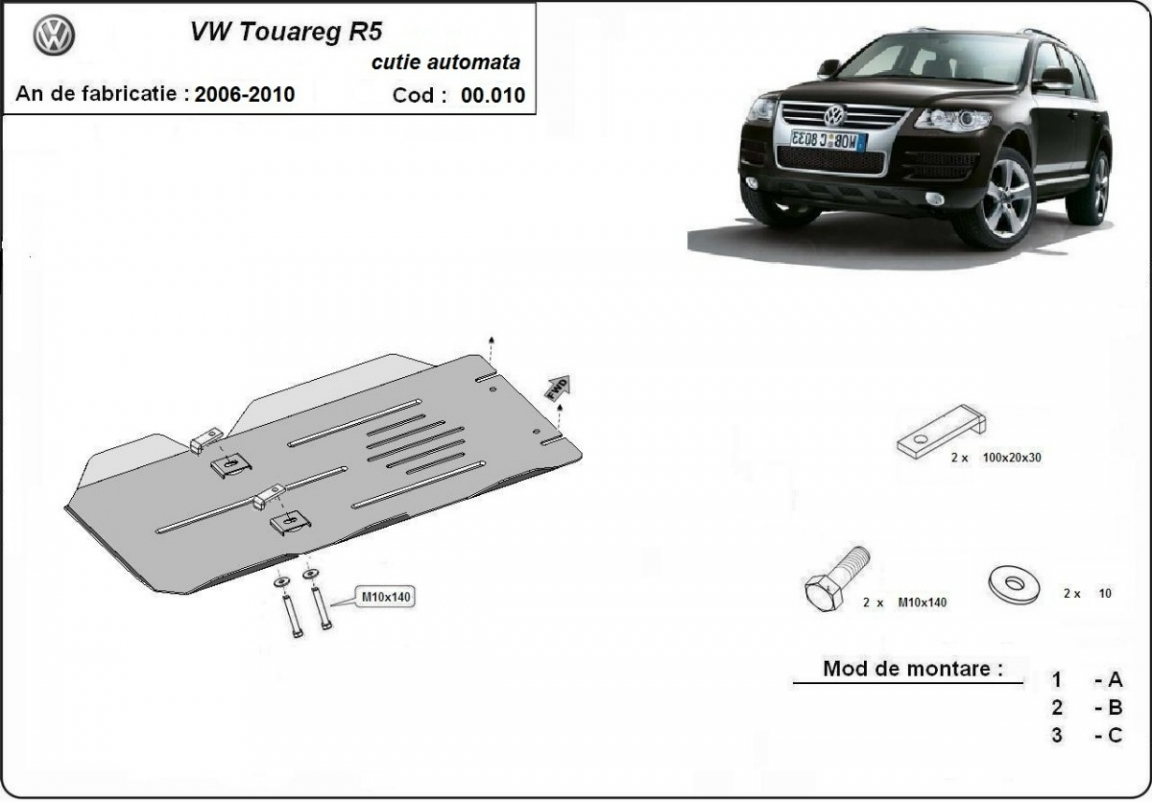 Voor de bescherming van: versnellingsbak De motor beschermplaat is nieuw en past perfect bij de Volkswagen Touareg R5 - automat, met de volgende motor / aandrijfversies: Automat - geproduceerd tussen 2003 en 2010. Gemaakt van 3 mm dikke Staalplaat. Schroeven, moeren, alle bevestigingsaccessoires zijn inbegrepen. Alle carterbeschermplaten zijn poedergecoat, om corrosie te vermijden. De buitenkant van de carterbeschermplaten heeft staalversterkingen, waardoor de weerstand tegen impact wordt verhoogd. |