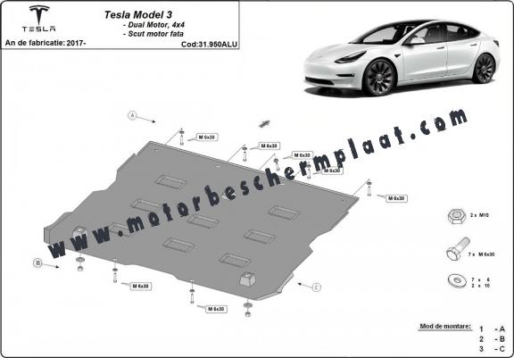 Voorste aluminium beschermplaat voor de elektrische motor van de Tesla Model 3 AWD (2017-2026)
