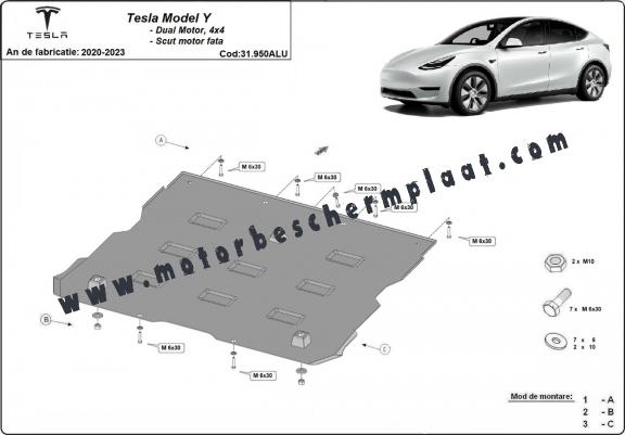 Voorste aluminium beschermplaat voor de elektrische motor van de Tesla model Y (2020-2023)